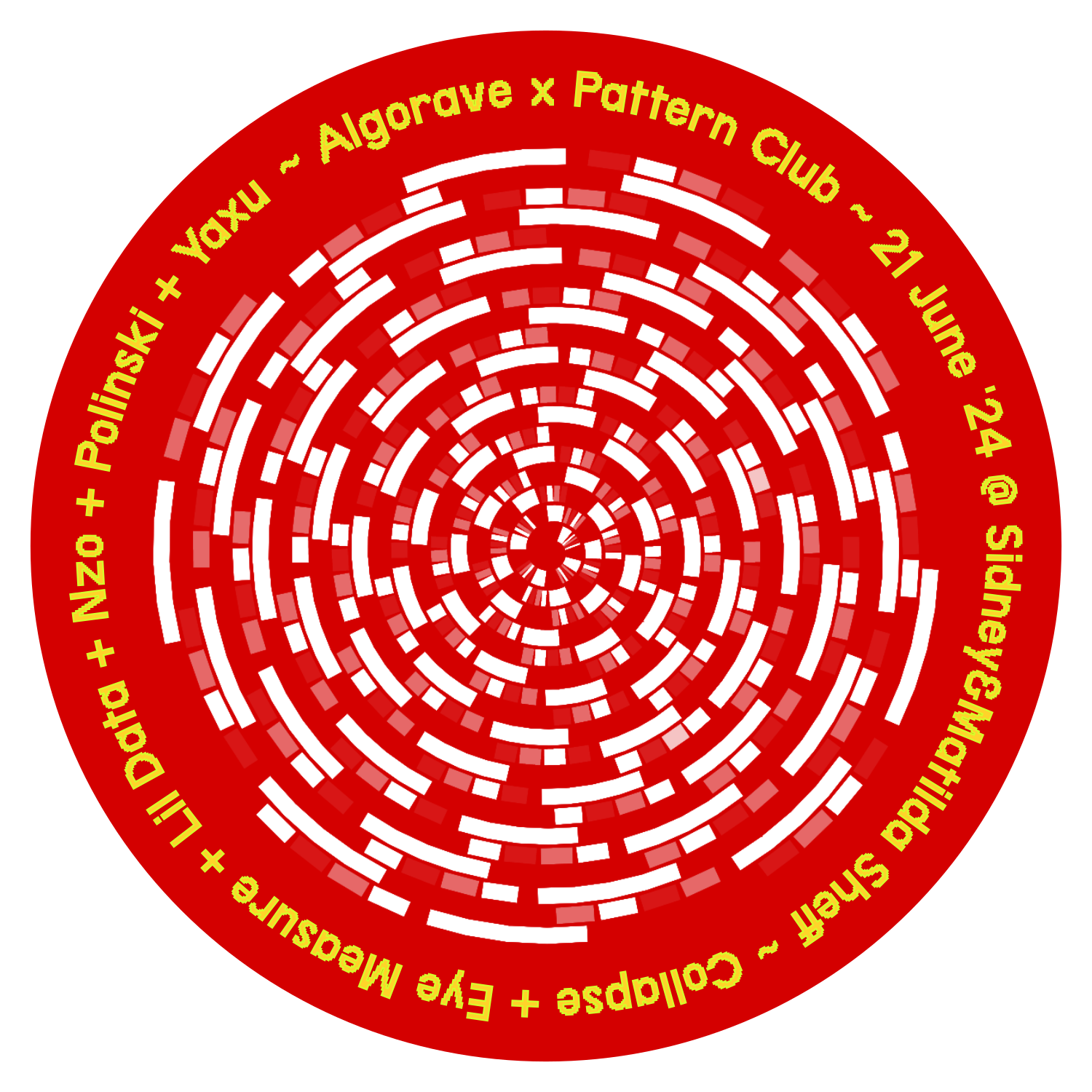 So now I am back to not yet having any idea what I'm going to do. I don't have a current show built. I have released Telex and Panamax since I last played live, and with The Matte Flex video I have a fun A/V environment that I could, in theory, turn into some kind of live pattern visualiser. Or even live-generative-audio tool. What I don't have is enough free time to do any of that to a very good quality between now and 21st June.